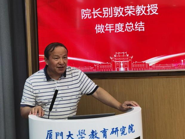 别敦荣院长在年度工作总结中对本学年全院师生通过有组织的教学、科研与社会服务取得了丰硕的成果以及展现出强大的团队精神给予高度肯定。他表示,教育学一流学科建设的验收工作将是我院新学年的中心工作,在重点研究方向上应该有所突破。此外,他还对新学年即将承办的2024年全国高等教育研究博士生学术论坛和高等教育国际论坛等重大学术活动作出工作部署。他强调,要坚持 “一流党建引领一流学科”的理念,推动党建与事业发展深度融合、以高质量党建引领高质量发展,在中国高等教育自主知识体系建构与实践方面取得重要突破。