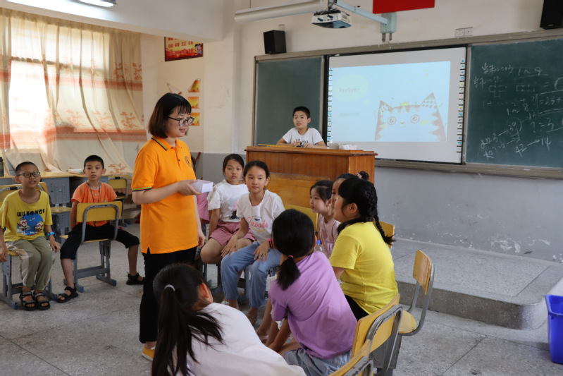 又是一个阳光明媚的早晨,“榕树厦”实践队成员们迎来了第五天的支教活动。7月2日上午八点三十分,学生们期待已久的趣味科学课和数学课如约而至。趣味科学实验由实践队队员孙略主讲,在一步步的启发和指导下,学生们都成功地使用电池、导线、开关等材料点亮了小灯泡。在自主学习和自主探索的过程中,学生们学习了简单电路的基本知识,了解了电路构成的基本元素与基本形式,通过观察电路通断、灯泡明暗等实验现象激发了学习兴趣与积极性。最后,针对本节课的实验内容,还组织了奖品丰富的知识竞答环节,同学们踊跃地参与到问题抢答中,现场氛围十分热烈。通过本次的趣味科学实验,让登俊小学的同学们感受到了成功点亮小灯泡的喜悦,也体会到了科学探索的乐趣,并在实验过程中锻炼了不怕失败、大胆探究、敢于创新的科学态度。