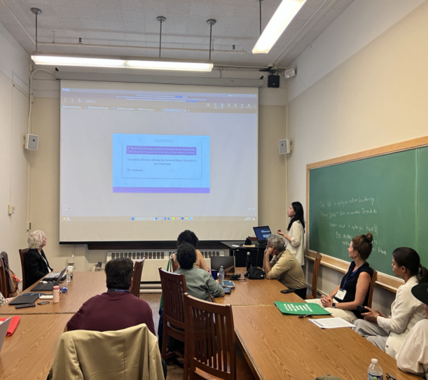 在分论坛报告中,吴薇教授和黄丹阳博士生共同报告了《荷兰高等教育普及化发展进程及影响因素探析》(Research on the Development Process and Influencing Factors on Universal Higher Education in the Netherlands)。该研究基于相关数据库,分析荷兰高等教育普及化进程呈现出的特点和影响因素。