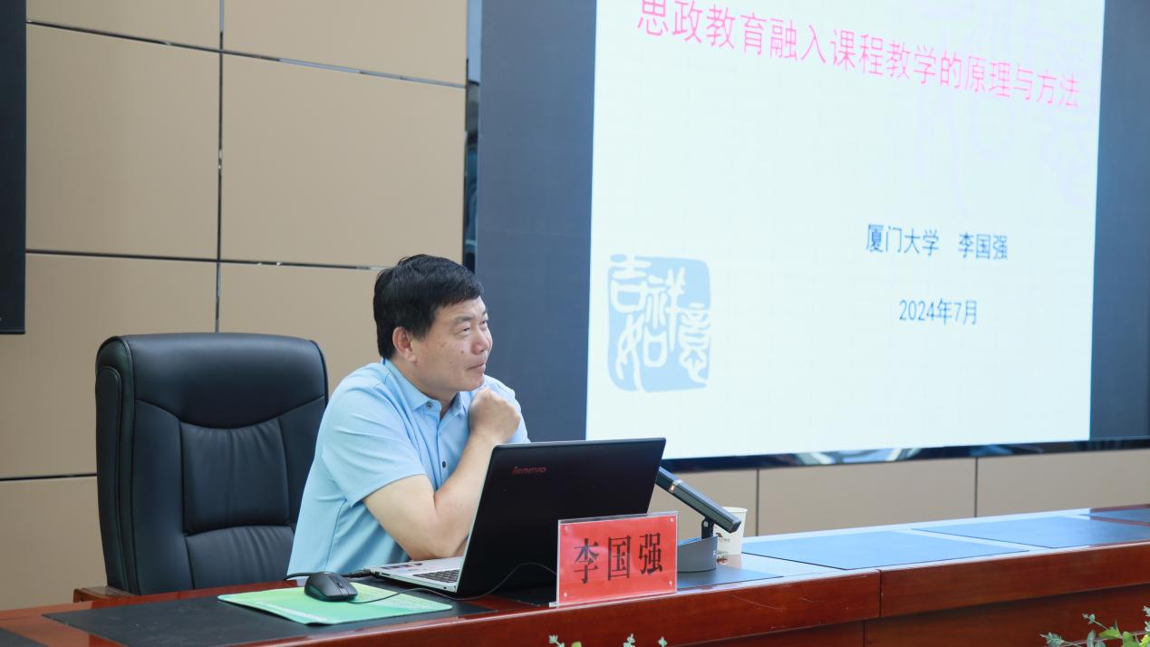 在7月31日至8月1日的“山海授业,师者匠心”县中教师教学能力线上提升班中,厦门大学研究生院培养与管理办公室副主任郭建鹏教授、教育研究院李国强副教授和林敏博士分别为县中193名教师讲授《教师教学能力提升与专业发展》《思政教育融入课程教学的原理和方法》《如何加强学生心理健康教育》的专题讲座。