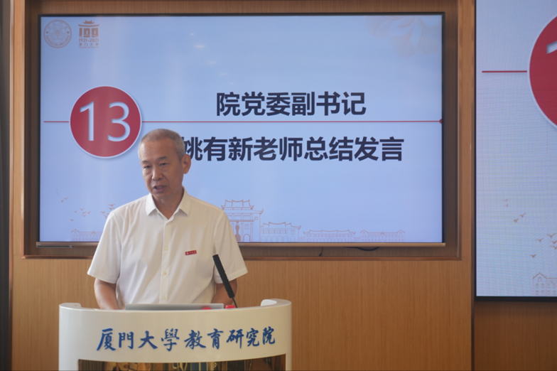最后,姚有新副书记作总结发言,他代表院党委对大会的顺利召开和选举产生的新一届团总支/研究生会表示祝贺,对第十九届团总支/研究生会全体学生干部的辛勤付出表示感谢。他向新一届团总支/研究生会和学生干部提出五点要求:一是要胸怀家国、坚定信念,做引领者;二是要担当使命、认真履职,做开拓者;三是要锤炼本领、提高素养,做奋斗者;四是要主动作为、甘于奉献,做服务者;五是要遵规守纪、从我做起,做践行者。他希望大家认真学习贯彻党的二十大精神和学校第十二次党代会精神,牢记习近平总书记的期望和嘱托,充分发挥团总支/研究生会“学生之家、师生之桥”的作用,团结共进,在团总支/研究生会这个平台更好地成长成才,为厦门大学教育学一流学科建设作出更大贡献。