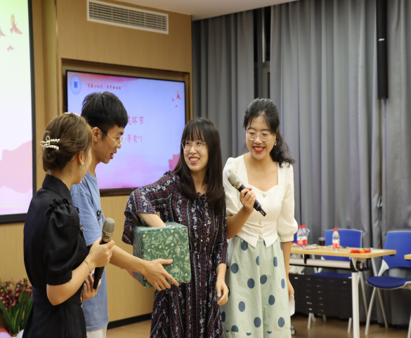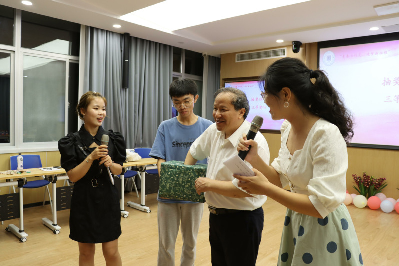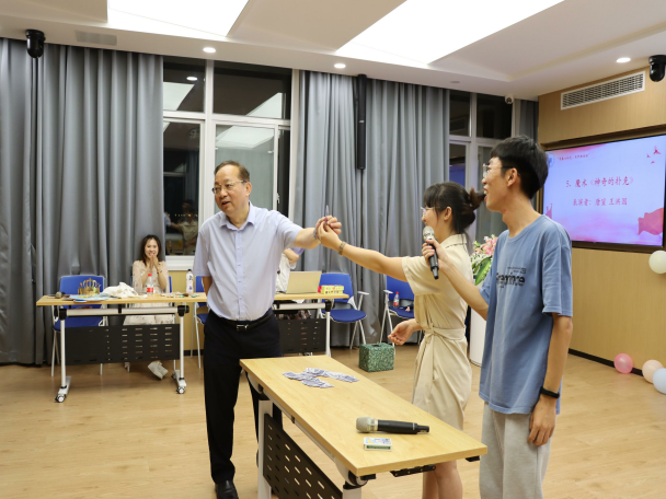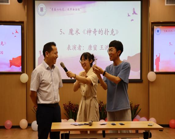 歌舞表演之外,还有令人激动的魔术表演,唐蜜和王洪国配合默契,各位老师的加入使得表演获赞连连。晚会的精彩之处还在于有穿插其中的小游戏和抽奖环节,师生共同参与,现场气氛热烈。