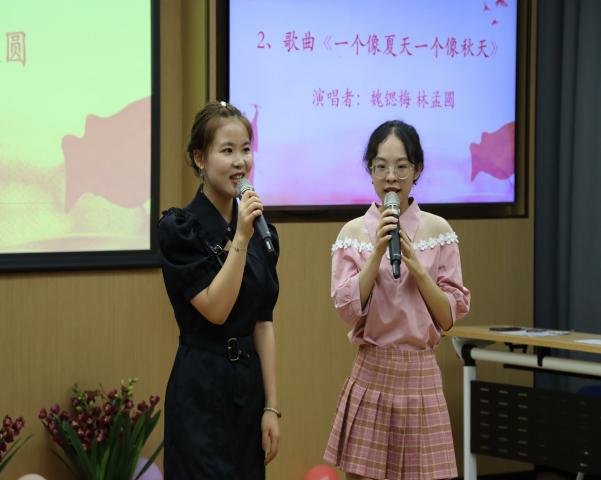 悠扬的歌声亦回旋在502教室的上空,毕业生魏锶梅、林孟圆演唱的《一个像夏天一个像秋天》、毕昊杰演唱的《送别》、闵叶子带来的《那些花儿》、张盈盈带来的《想见你想见你想见你》,优美的歌声不禁把大家的回忆拉回了与朋友朝夕相处的日子中。除了学生的表演之外,杨广云老师也为大家带来了一首《莫斯科郊外的晚上》,通过婉转美妙的歌声聆听杨老师与俄罗斯这个国度的不解之缘。