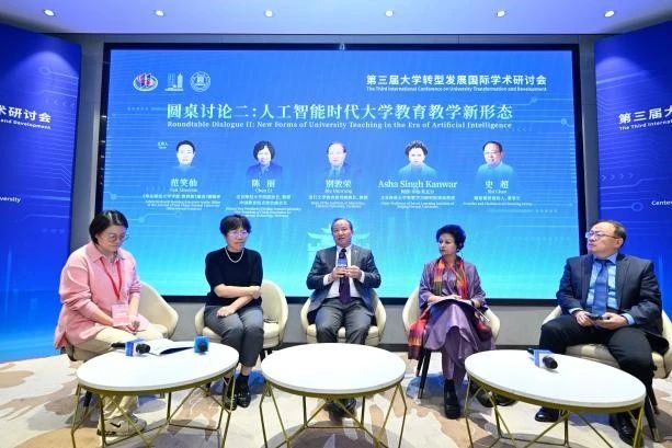 在圆桌论坛环节,陈丽、别敦荣、Asha Singh Kanwar、史超围绕“人工智能时代大学教育教学新形态”展开讨论,对高等教育是否也应赋能人工智能、人工智能赋能高等教育的理论如何有效运用于实践等问题与观众对话交流。圆桌论坛由《华东师范大学学报·教科版》编委、副编审范笑仙主持。