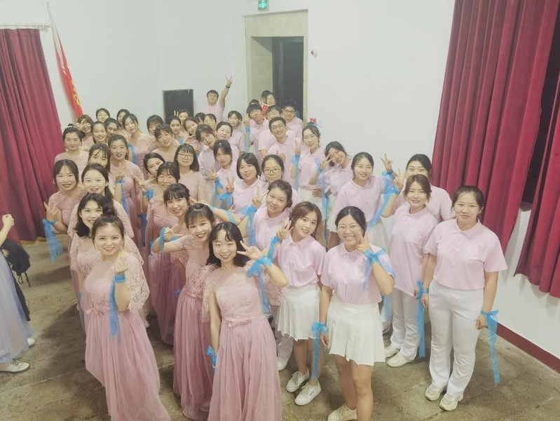 活动前期,我院每周都按时组织合唱练习,在艺术学院陈碧儿和陆诗怡同学的指导下,参加合唱的同学都十分积极认真地加入到排练中,在一遍遍的练习、巩固和调整中,大家之间的配合程度逐渐提高,对歌曲的演绎越来越熟练、越来越生动。