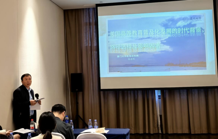 在平行会场“高水平研究型大学创新发展”中,我院连进军副教授作了《美国高等教育普及化的时代背景、路径选择及影响因素》报告,清晰地阐释了美国高等教育普及化的历史脉络,探讨了其实践路径中的关键策略及面临的挑战。