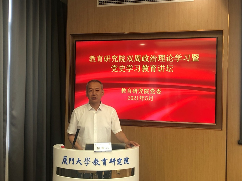 6月7日下午,教育研究院在院502报告厅举行党史学习教育讲坛系列活动暨党委理论学习中心组第三讲。中共厦门市委党校党史党建教研部副教授张公政应邀为我院师生作“新思想在福建的策源与形塑——习近平总书记在福建的探索与实践”专题讲座。本次活动由教育研究院党委副书记姚有新主持,校党委组织部副部长乔连全、研究院党政领导班子成员以及全院师生参加,教务处现教中心联合党支部在教务处会议室和翔安校区设分会场参加学习。