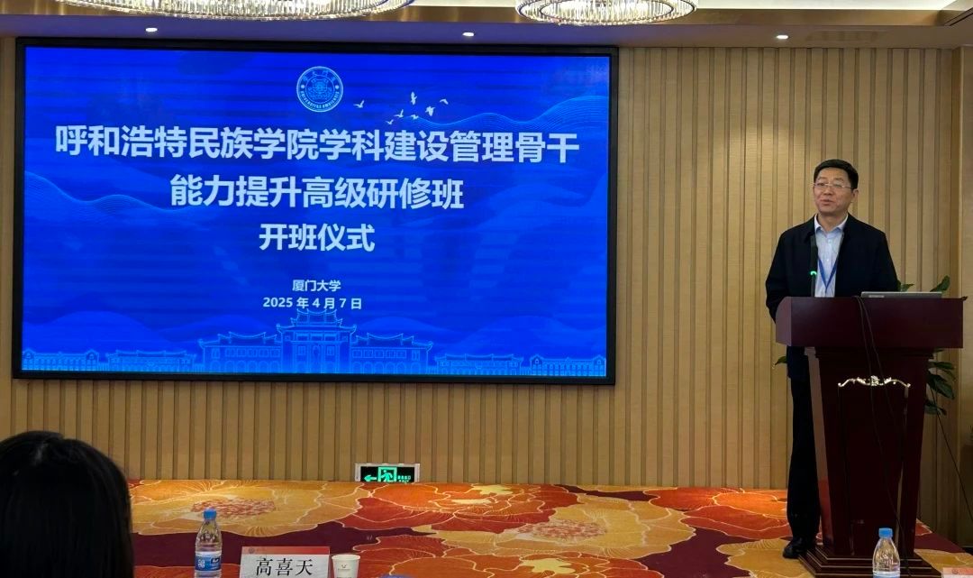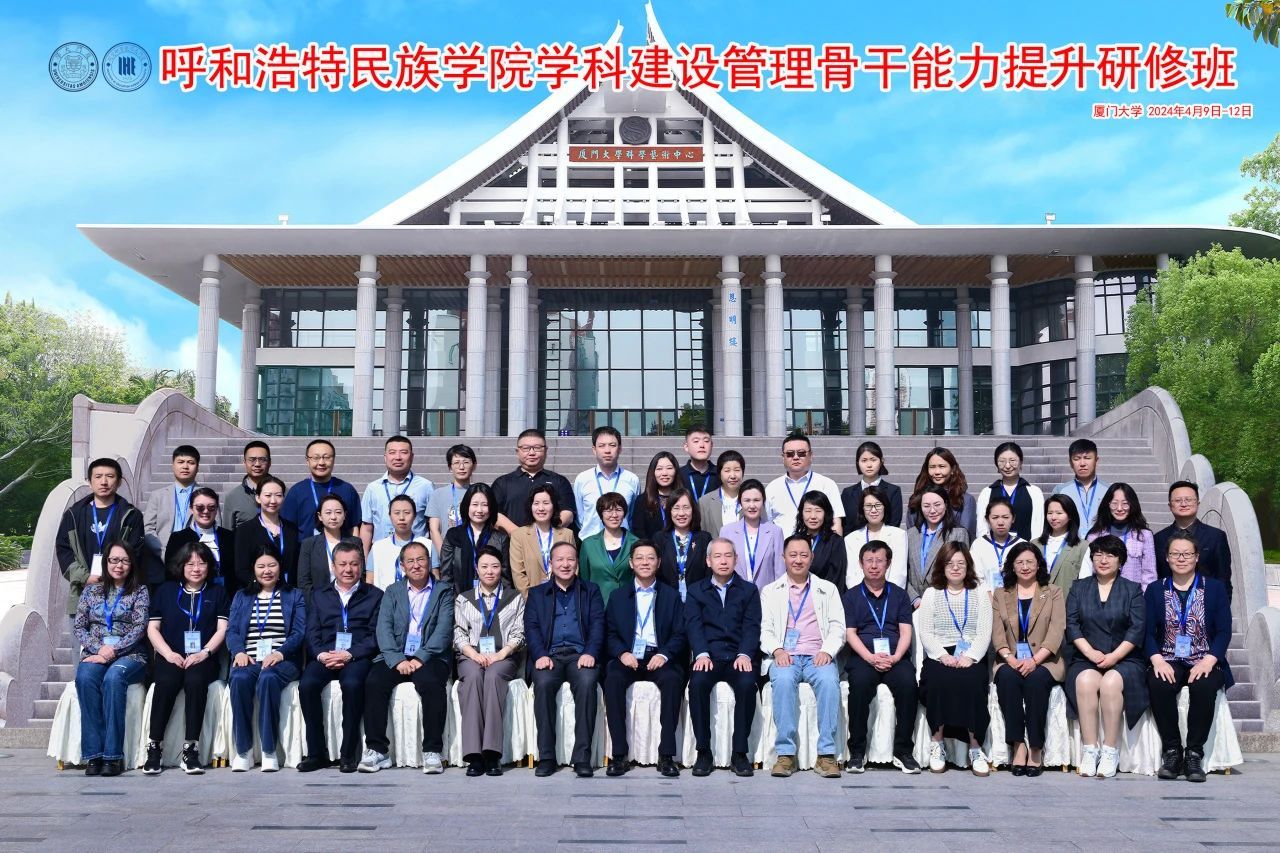 2025年4月7-11日,“呼和浩特民族学院学科建设管理骨干能力提升研修班”在厦门大学成功举办。本次研修班由厦门大学教育研究院承办,呼和浩特民族学院副校长高喜天、发展规划与学科建设处处长海霞,厦门大学教育研究院院长别敦荣、党委副书记姚有新分别出席开班仪式和结业仪式并致辞。来自呼和浩特民族学院行政部处和二级院系的46位学科建设管理骨干参加了培训。