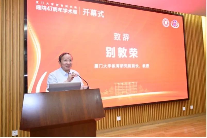别敦荣院长首先作开幕致辞。他回顾了厦大教育研究院从研究室到研究所再到研究院的建院历史,以及从建立新学科到建成重点学科再到建设“双一流”学科的发展变化,强调教育研究院在潘懋元先生的带领下,经过47年的锤炼,已成为国家高等教育研究重镇、人才培养摇篮和高端智库。他指出,以学术的方式为研究院庆生是厦大教育研究院的重要传统,但学术周的举办不仅在于为研究院庆生,更是借此契机,回溯学术初心,传承潘先生“敢为天下先”的精神,汲取奋进力量。谈及未来,别敦荣表示,面对建设教育强国的伟大使命,厦门大学教育研究院应主动对接国家高等教育发展战略需求,优化学科发展方向,推动学科范式转型,为构建中国高等教育学自主知识体系贡献厦大智慧。