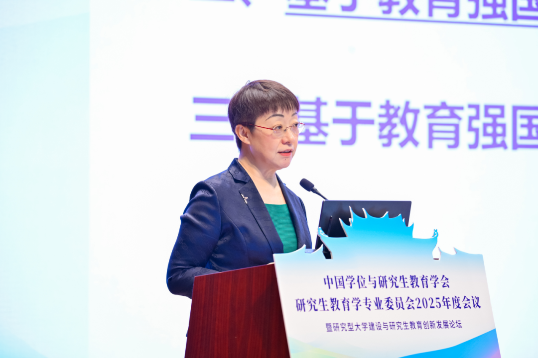 张淑林副会长代表中国学位与研究生教育学会对本次会议召开表示热烈祝贺。她在致辞中指出,研究生教育是国民教育的最高层次,是国家核心竞争力的重要体现,在教育强国建设中发挥引领标杆作用,有关高校应当进一步增强投身教育强国建设的使命担当,切实将《教育强国建设规划纲要(2024-2035年)》学习成效转化为推动研究生教育高质量发展的具体成果。