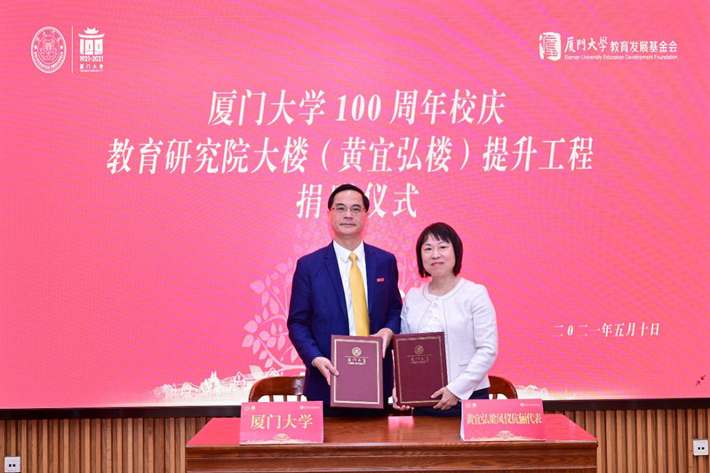 5月10日下午,教育研究院大楼(黄宜弘楼)提升工程捐赠签约仪式在厦门大学科艺中心一号会议厅举行。香港著名财经小说作家、企业家、慈善家梁凤仪博士代先生黄宜弘博士慷慨捐赠厦门大学,用于我院大楼提升工程(为感谢博士伉俪义举,教育研究院大楼命名为黄宜弘楼),支持学校事业发展。捐赠人代表、香港勤+缘慈善基金董事局办公室主任兼主席高级助理招慧霞,厦门大学副校长、教育发展基金会副理事长邱伟杰,我院院长别敦荣等出席捐赠仪式。仪式由厦门大学教育发展基金会秘书长曾国斌主持。