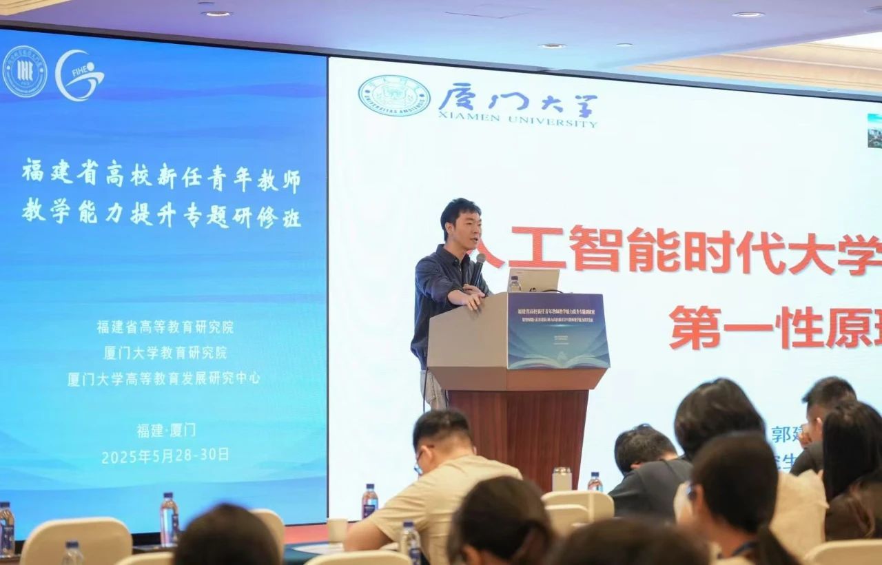 5月30日下午,厦门大学研究生院培养与管理办公室副主任、教育研究院郭建鹏教授以“人工智能时代大学教学创新的第一性原理”为题,聚焦人工智能时代大学教学创新的核心理念和要求,他提出教师教学要更加关注高阶目标,要帮助学生为新学习做好准备,要精心处理新知识的关键特征并提供有效指导,要让学生有机会应用所学知识解决问题,要让学生参与到学习共同体中,才能促进学生学习。他呼吁青年教师在教学实践中持续学习教学理念,以不断提升课程教学质量,培养更多拔尖创新人才。