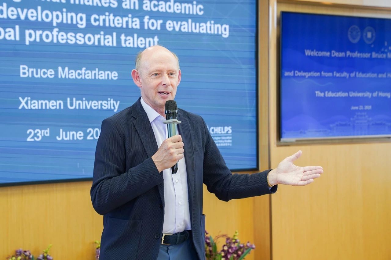 2025年6月23日,香港教育大学教育与人类发展学院院长麦博思(Bruce Macfarlane)教授、副院长陈君君教授、郑颖彤助理教授一行来访我院,参加双方在厦门大学黄宜弘楼502报告厅举行的世界地缘政治变化与大学学术合作交流学术研讨会。我院院长别敦荣教授、党委副书记姚有新、副院长赵婷婷教授等教师代表参会。我校研究生院培养办副主任(主持工作)郭建鹏教授出席。研讨会由厦门大学高等教育发展研究中心副主任吴薇教授主持。