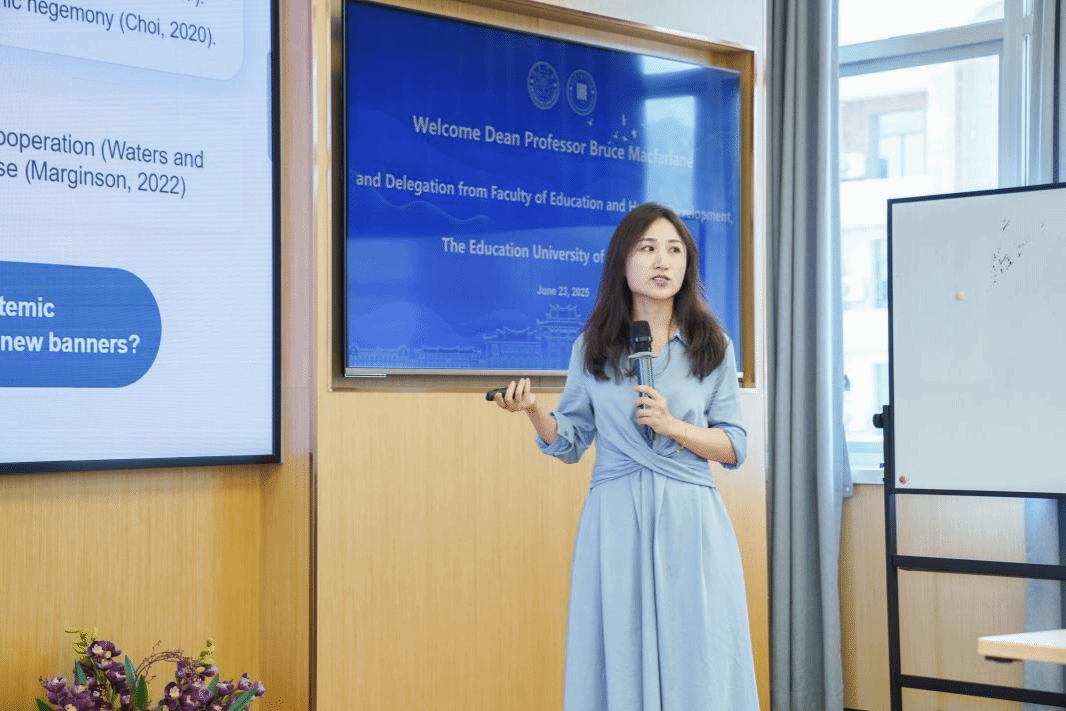 在讨论环节,两院学者就学术报告内容提出问题,围绕地缘政治对高等教育的影响、大学教师评价标准变化、跨文化教育研究等话题展开深入交流。麦博思院长回应了我院教师的提问;陈君君副院长特别强调了两院合作的重要性,提议在联合研究、师生互访等方面深化协作;郑颖彤助理教授表示研讨会具有高度学术价值,为跨文化教育提供了新视角。