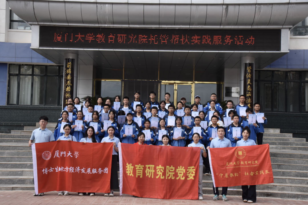 为深入服务西部地区教育发展,2025年7月15日,厦门大学“启智助学・强地发展”博士生地方经济发展服务团走进宁夏隆德县高级中学,通过座谈交流、主题班会、沙龙讲座及深度访谈等形式开展实践服务和调研活动,由厦门大学教育研究院院长别敦荣教授、高等教育发展研究中心副主任吴薇教授、助理教授曹雪萌、教育研究院秘书吕铖以及9名硕博研究生组成的服务团参与了此次活动。