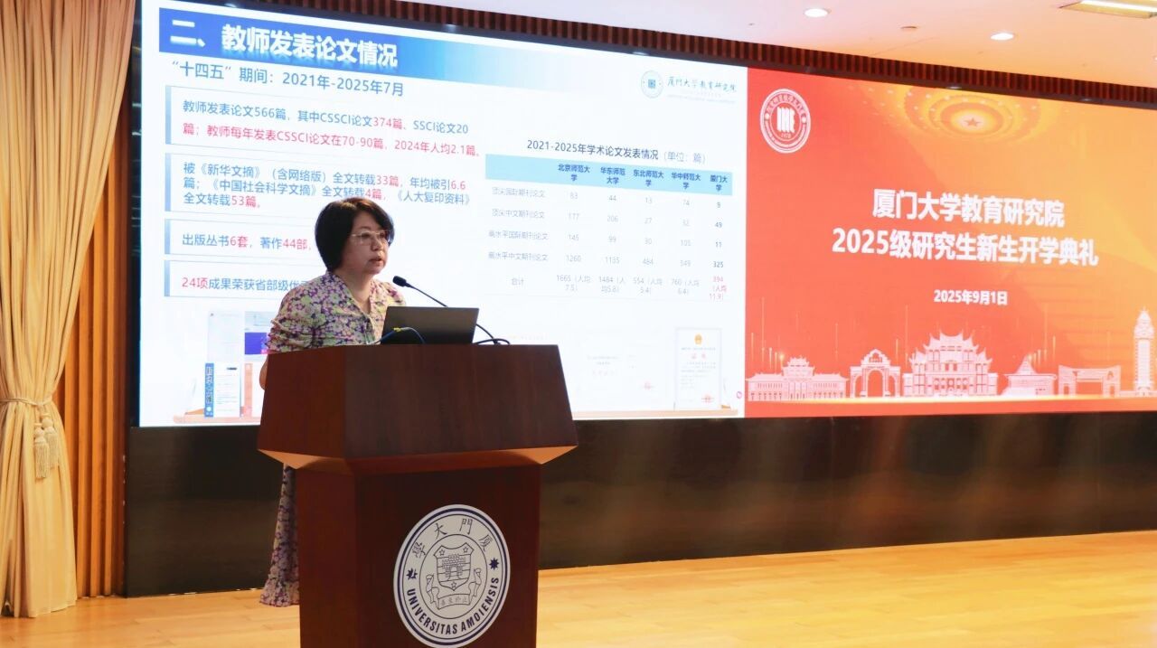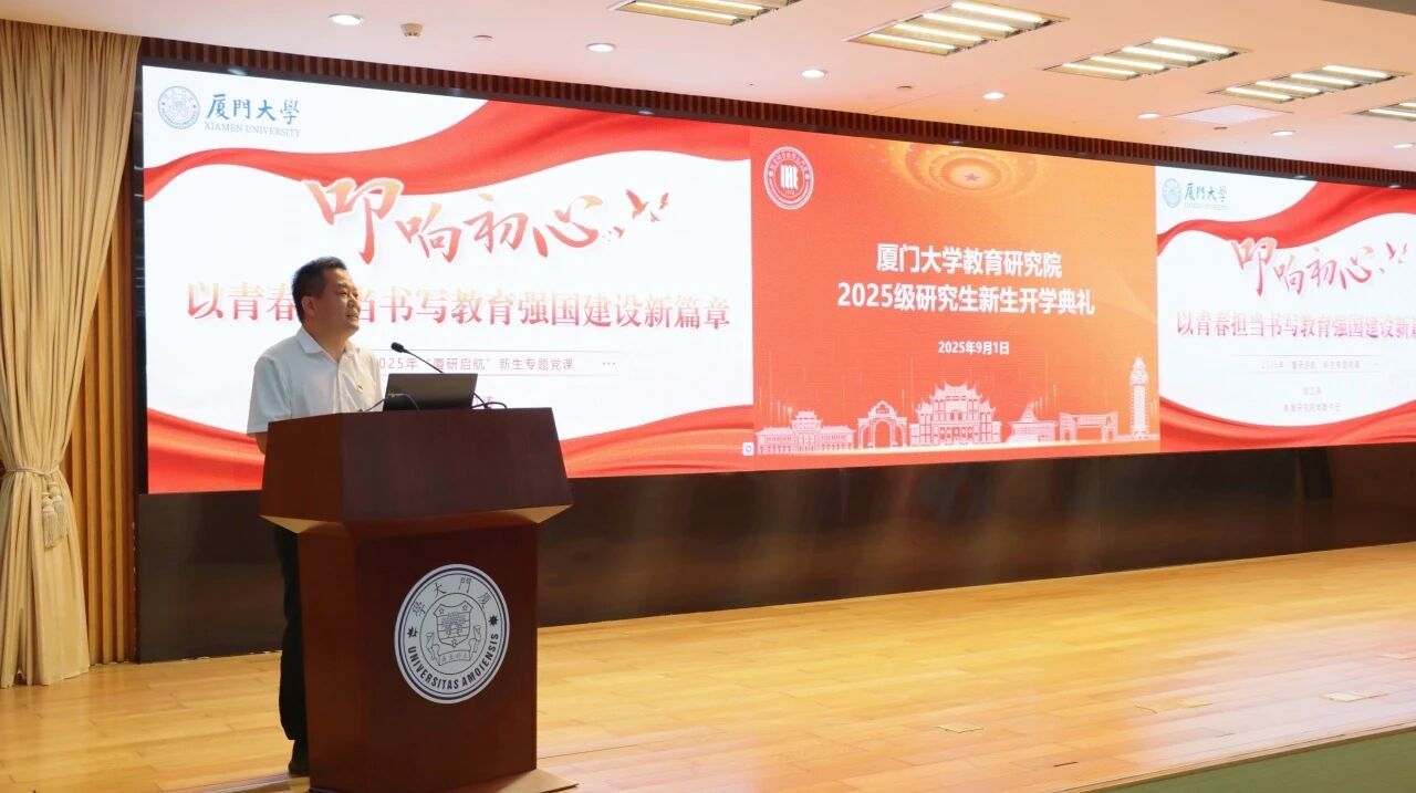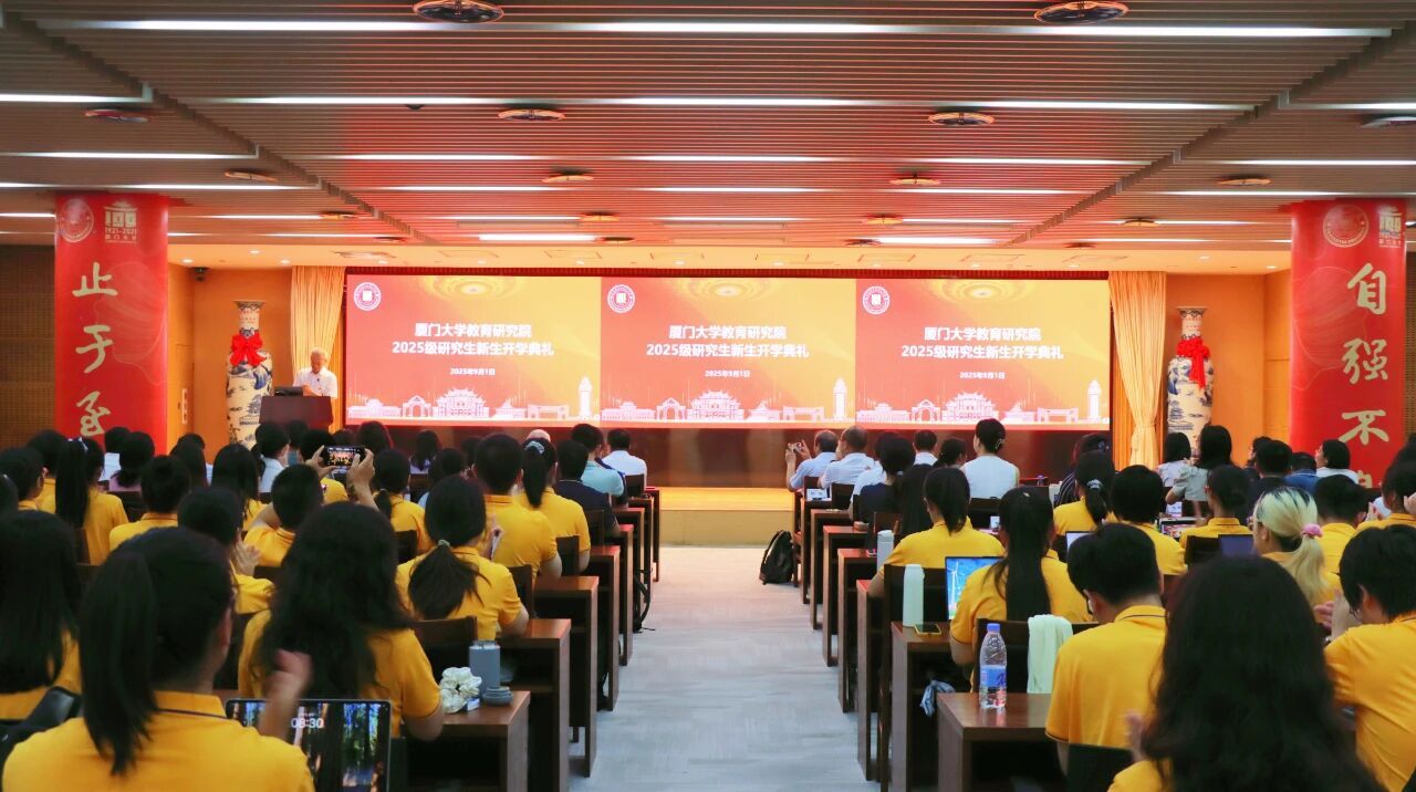 2025年9月1日,教育研究院2025级新生开学典礼在厦门大学科学艺术中心一楼多功能厅举行。中国高等教育学会副会长、厦门大学校务委员会副主任邬大光教授,院党政领导班子成员出席开学典礼,党委副书记姚有新主持典礼。87名研究生新生将在教育研究院这个思想荟萃的学术殿堂探求新知,开启难忘的青春时光。