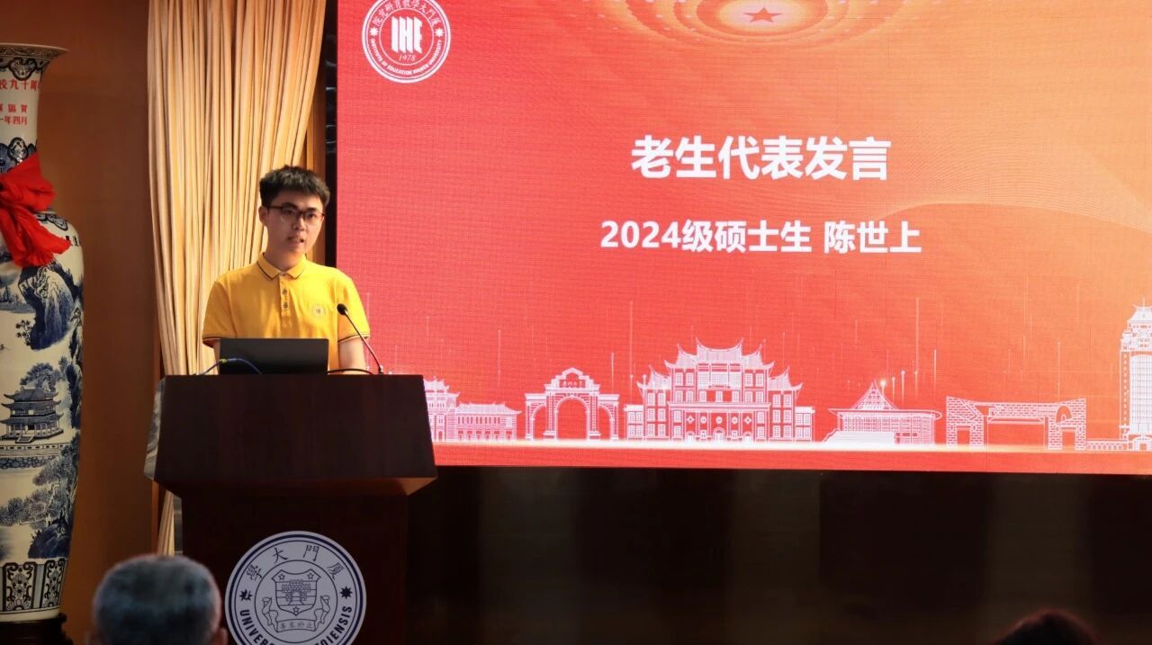 2024级硕士研究生陈世上同学作为老生代表分享了过去一年在教育研究院的感悟与收获,他认为学院为同学们提供了生活的温暖和学术探索的底气,鼓励新生在学术路上并肩前行,成为更优秀的研究者。