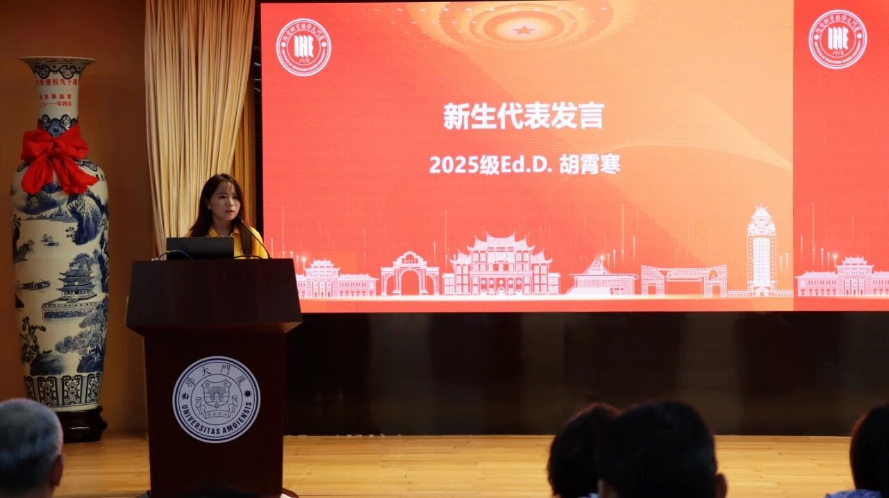 新生代表Ed.D.胡霄寒、博士生张德华、硕士生肖颖俊先后发言。他们表达了成为新厦大教研人的自豪与激动,抒发了对教育事业的热爱,表示对接下来在教育研究院的学习生活充满期待,与所有新同学共勉,继承潘先生的精神,守正创新,砥砺前行,共同为教育强国事业贡献青春力量。