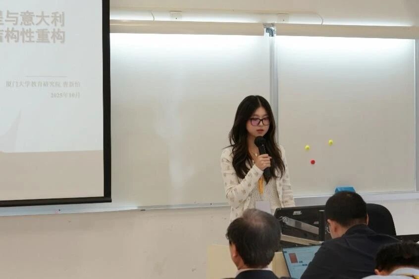另外,硕士研究生曹新怡、刘镔锐分别围绕“博洛尼亚进程与意大利高等教育制度的结构性重构”和“鼓浪屿近代女学发展研究”分享了研究成果。
