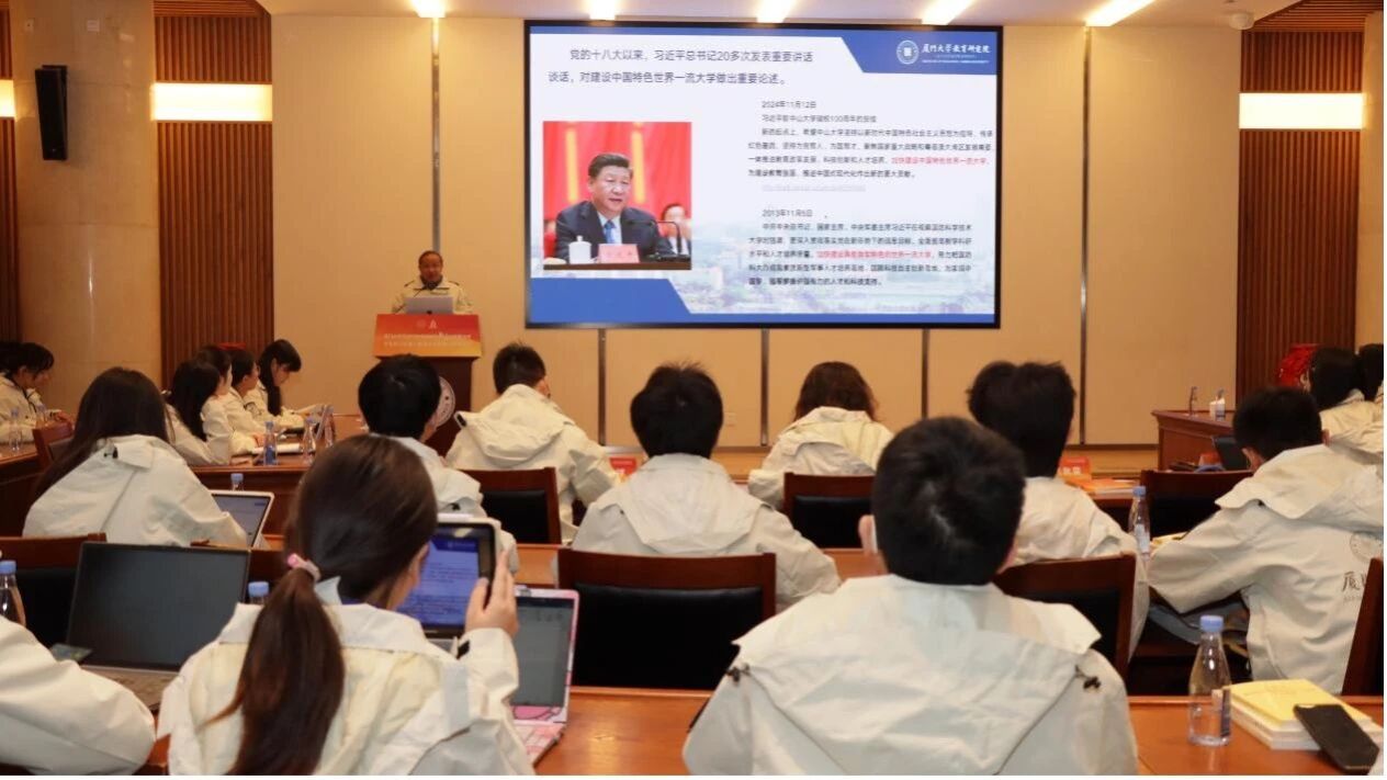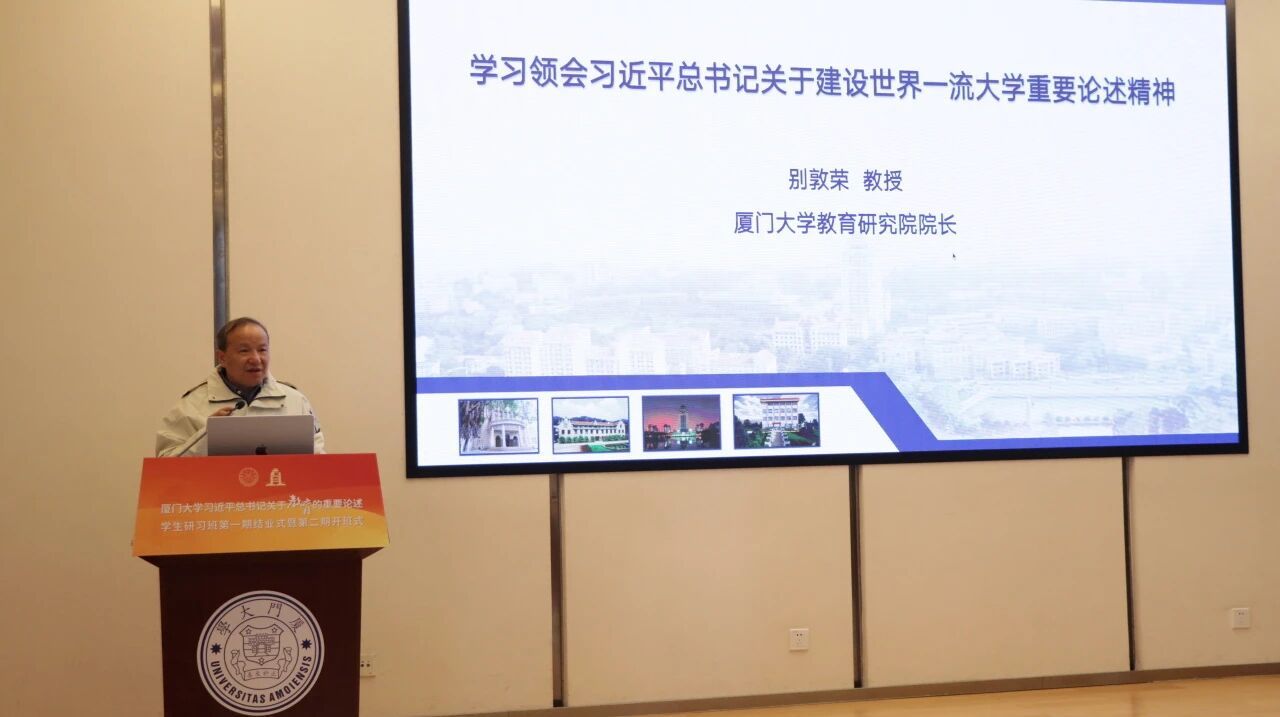 11月29日上午,由厦门大学学生工作部(处)主办,教育研究院、建筑与土木工程学院等单位联合承办的厦门大学习近平总书记关于教育的重要论述学生研习班(以下简称“研习班”)第一期结业式暨第二期开班式在思明校区科艺中心四号会议室举行。厦门大学教育研究院院长别敦荣教授,研习班班主任、教育研究院党委副书记姚有新、建筑与土木工程学院党委副书记邹海燕,研习班指导老师代表教育研究院吴薇教授、郭一蓉副教授、肖桐助理教授、易梦春助理教授,建筑与土木工程学院刘吉祥助理教授、郭吉超助理教授及研习班第一期学员代表和第二期全体学员参加了仪式。仪式由研习班项目秘书、教育研究院团委书记李怡佳主持。