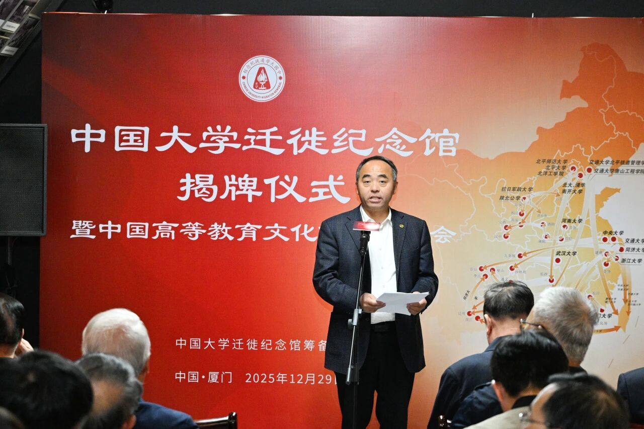 胡文平代表厦门大学向各位来宾表示热烈欢迎,并阐述了建设纪念馆的意义。他表示,抗战时期的大学迁徙是一场深刻的精神重塑,大学在极端条件下将自身命运与国家存亡紧密绑定,延续了高等教育命脉。他特别回顾了厦门大学于1937年内迁闽西长汀、坚守东南半壁教育火种的经历,这段历史正是厦大精神气质的源泉。他强调,要努力将本馆打造成为传承大学精神、涵养家国情怀的重要载体,成为连接历史记忆与当代价值的人文桥梁,成为推动学术研究与育人实践深度融合的平台基地。