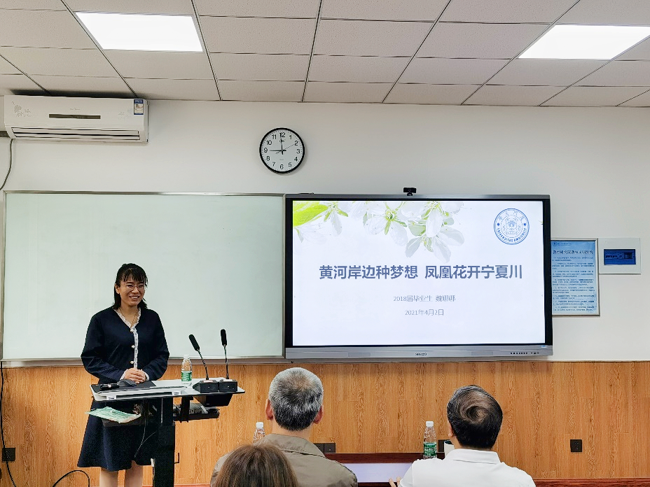 2021年4月3日上午,我院院友魏娜娜学姐为师生作题为《黄河岸边种梦想,凤凰花开宁夏川》的选调与驻村经验分享。别敦荣院长、姚有新副书记、魏艳老师等师生参加此次分享会。研究生会主席杨琦蕙主持分享会。 魏娜娜学姐毕业于厦门大学国防教育学专业,2018年成为宁夏回族自治区委组织部定向选调生。2019年下村锻炼,目前兼任东塔寺乡白寺滩村第一书记。