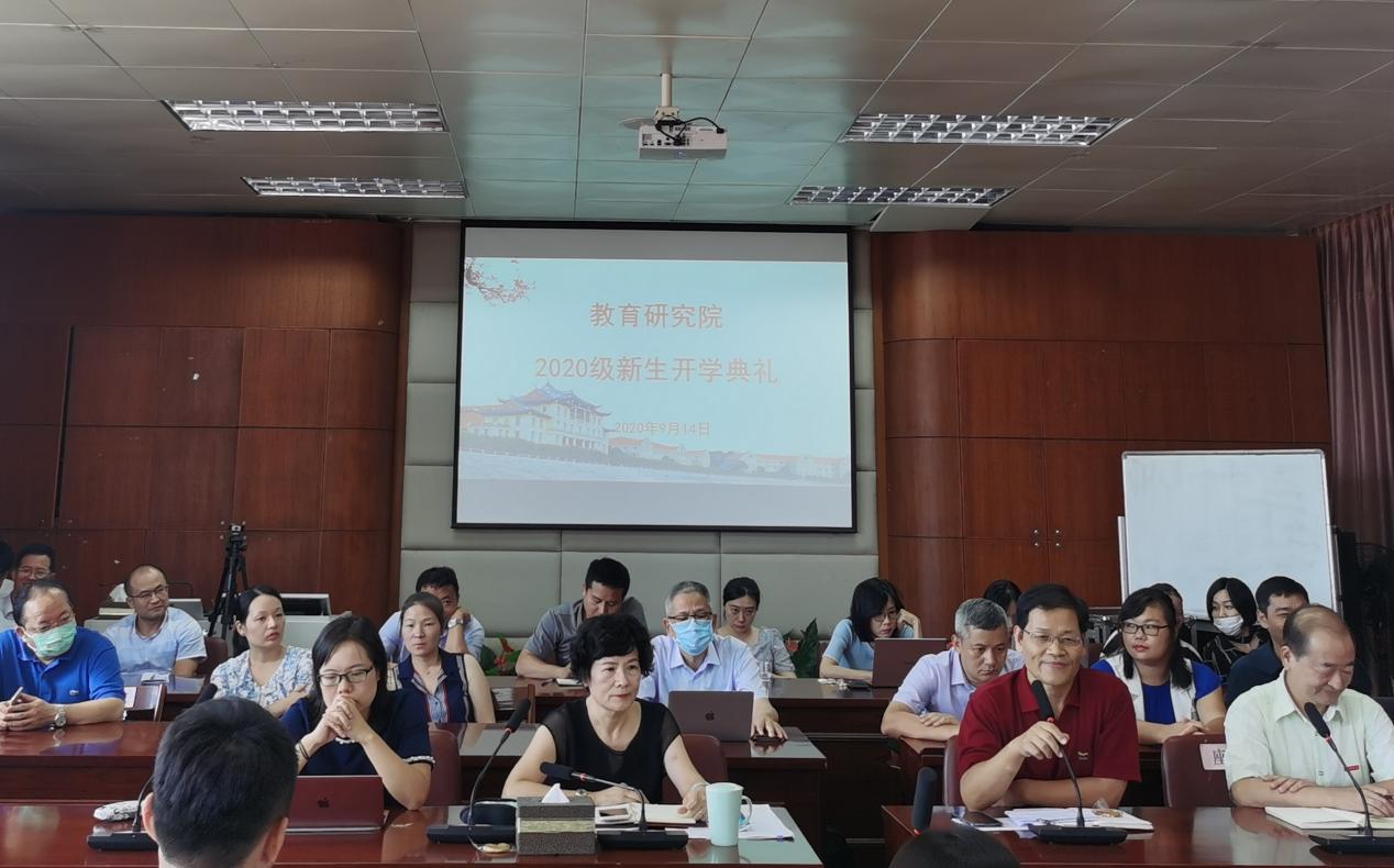 金秋厦园,别样迎新。2020年9月14日上午11:00,我院在502报告厅举行2020级硕博新生开学典礼。此次开学典礼由党委副书记傅伯奇主持,我院名誉院长、厦门大学文科资深教授潘懋元先生云端全程在线,研究院党政领导、教职工和全体2020级硕博新生现场参加。