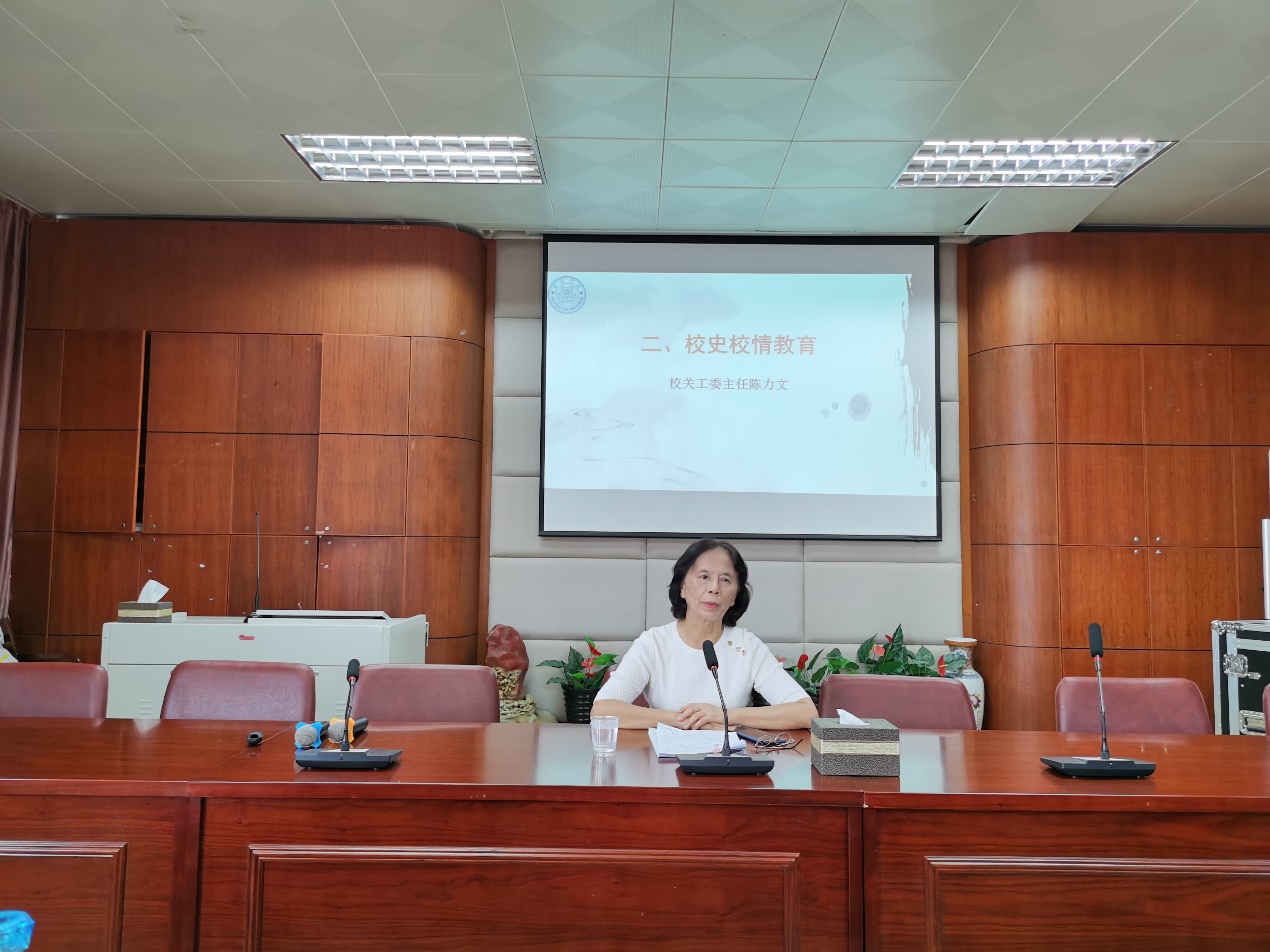 接着,关工委陈力文主任对新生进行了主题为“陈嘉庚与新中国”的校史校情教育。陈力文主任提到2020年是完成百年目标重要的一年,明年厦门大学也即将迎来百年校庆,同时也是陈嘉庚先生逝世60周年。陈嘉庚先生不仅是厦门大学的创办者,还是一个伟大的爱国者,毛泽东对其评价为“华侨旗帜,民族光辉”,习近平总书记也强调新时代要继续弘扬“嘉庚精神”。之后陈力文主任娓娓讲述了陈嘉庚校主一生倾资兴学、创办厦大的艰难历程以及陈嘉庚先生从小到大的生活经历、家庭背景,凸显了陈嘉庚先生坚韧不屈的品格和“变卖大厦,也要支持厦大”的爱国情怀。