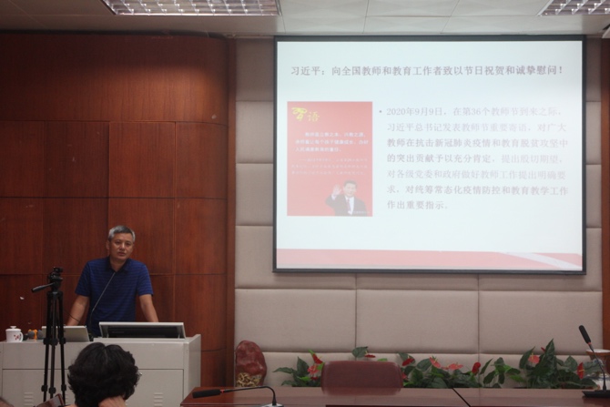 2020年9月21日上午,教工党支部本学期首次“双周政治学习”活动在502会议室举行,我院全体教职工参加了此次学习活动。在教工党支部书记陈兴德带领下,与会人员集中学习了教育部、中宣部《关于学习贯彻习近平总书记教师节重要寄语精神的通知》、《关于在教育系统深入开展向张桂梅同志学习的通知》和《关于认真组织好〈中国制度面对面〉学习宣传工作的通知》等三个文件精神。
