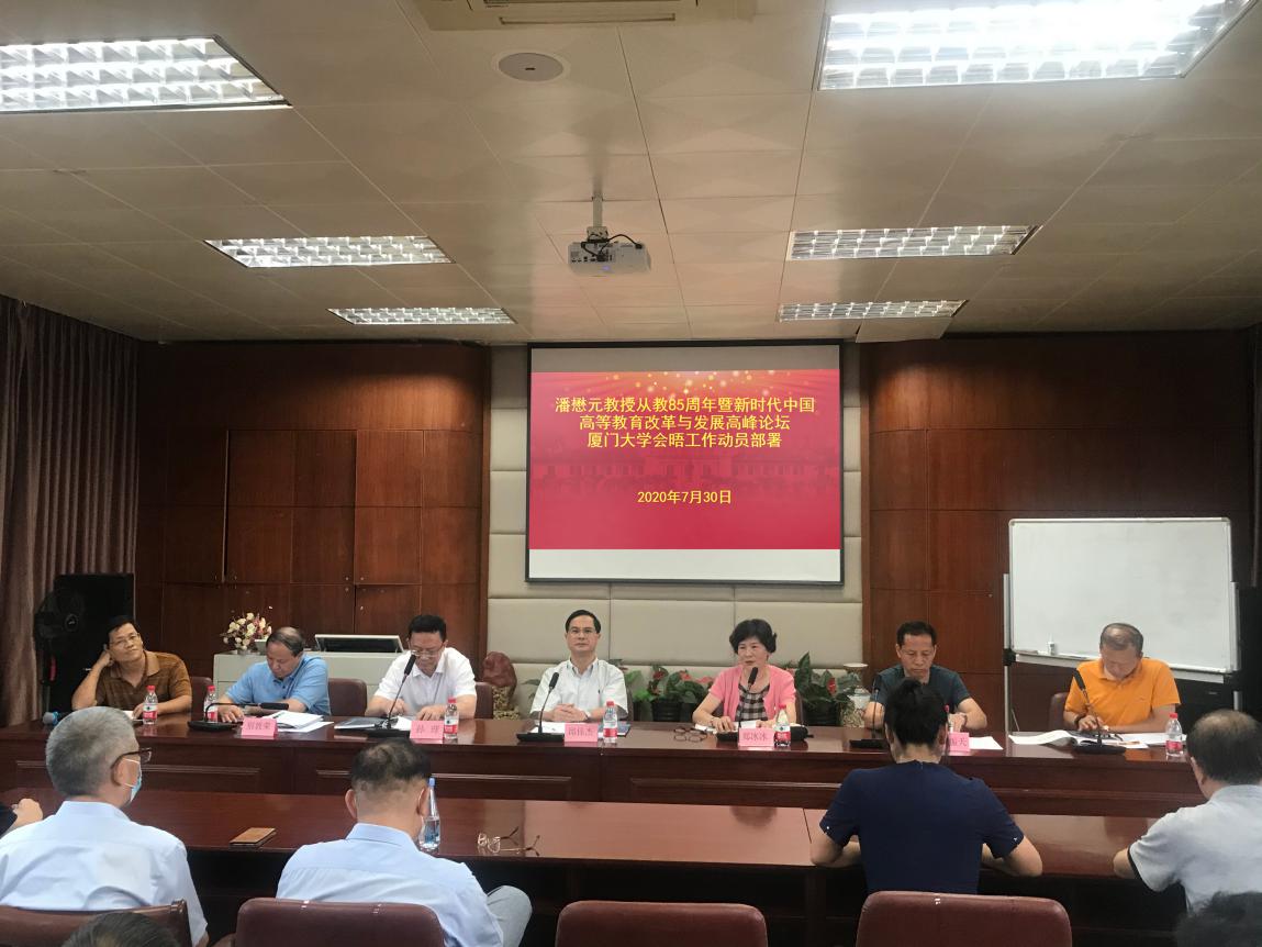在潘懋元教授从教85周年暨新时代中国高等教育改革与发展高峰论坛即将召开之际,7月30日下午,教研院在502会议室召开动员大会,厦门大学党委常委、副校长邱伟杰,党委常委、组织部部长孙理,校办副主任洪海松,教育研究院党委书记郑冰冰、院长别敦荣教授,厦门大学高等教育研究中心主任刘振天教授等领导及教育研究院全体教职工和学生代表出席了会议。会议由副院长王洪才教授主持。