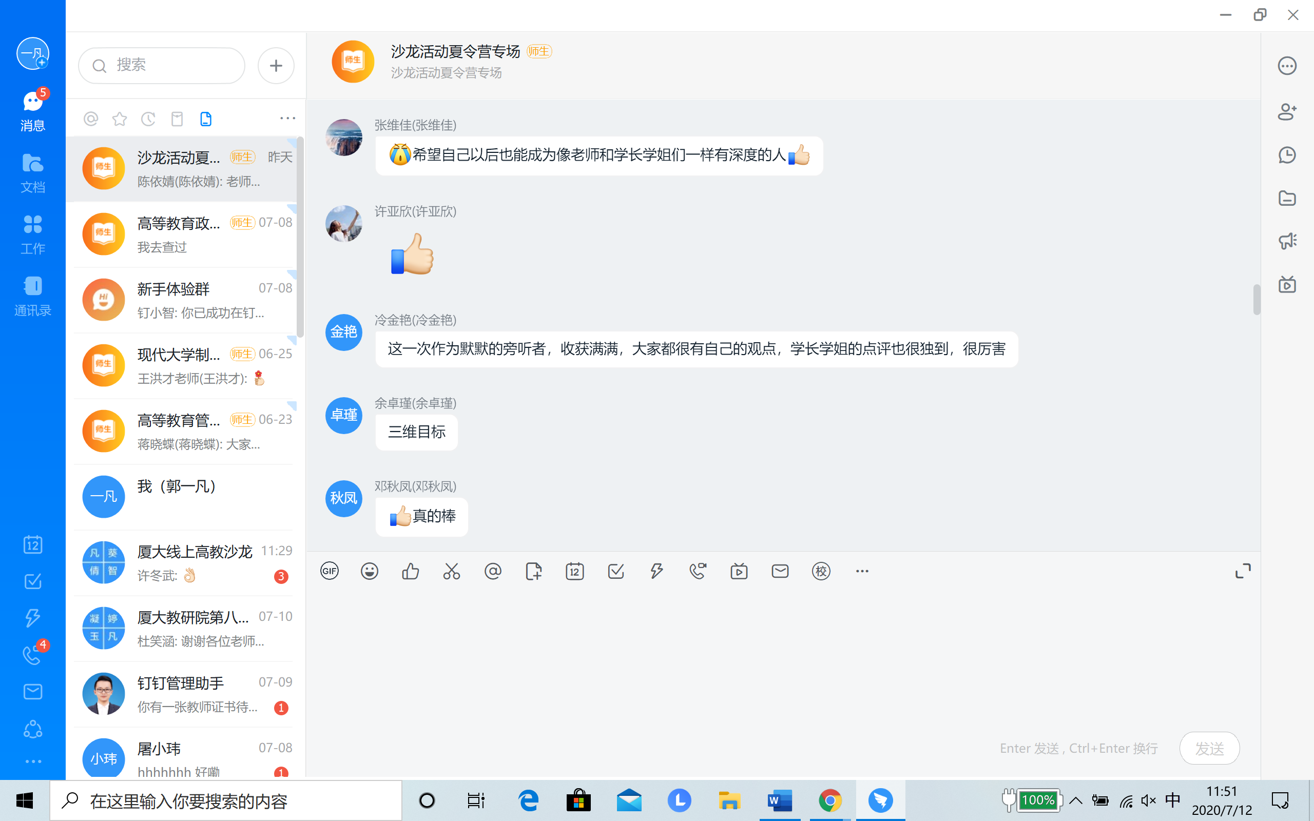 最后,王洪才老师对本次沙龙进行总结。他首先对三位报告人带来的精彩而具有启发性的分享表示了肯定,紧接着对三位同学的报告分别进行了点评。王老师提到,第一位同学的报告非常具有现实意义,而第二位同学的报告理论性强,融会贯通,值得继续深入挖掘,不足之处在于与现实需求有些脱节,第三位同学的报告是围绕热点话题展开的跨学科研究,虽然缺乏一些文献支撑,但基本问题的表述较为清晰。最后,王老师高度肯定了夏令营学员在此次沙龙中的表现,并且对大家的积极参与表达了感谢,同时也预祝夏令营同学在接下来的线上夏令营活动中过得愉快,顺利通过考核。
