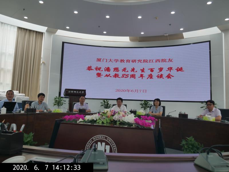 2020年6月7日,厦门大学教育研究院江西院友以庆贺潘懋元先生百岁华诞为契机,在江西师范大学瑶湖校区知行楼水晶厅举办座谈会,深入学习研究潘先生从教85周年的教育思想。出席座谈会的主要代表有南昌师范学院副校长2005级博士院友刘小强、2004级博士院友彭志武、吴根洲,2009级博士院友肖玮萍和2012级博士院友刘志忠。座谈活动分为两个阶段进行。
