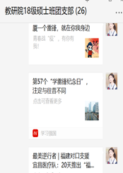 榜样接力,雷锋精神凝聚人心。当前,抗击新型冠状肺炎疫情形势出现积极变化,防控工作取得积极成效。为引导广大团员青年弘扬雷锋精神,礼赞在当前疫情中无私奉献的志愿者们,2018级硕士生团支部于3月6日召开线上主题团课,团课中观看了厦大微信“厦一个雷锋,就在你我身边”推文,以及“学习强国”中对口支援武汉医疗队相关视频等,通过相关资料的学习对雷锋时代精神以及如何践行雷锋精神进行充分讨论交流。