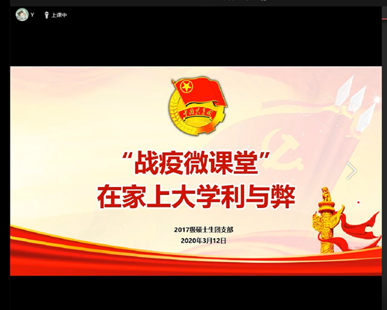 疫情就是命令,防控就是责任。为了打好校园疫情防控战,教育部发布了《关于2020年春季学期延期开学的通知》,主张“停课不停教,停课不停学”,从前笑言的“家里蹲大学”,变为了现实,成为了这一特殊时期大学生学习的主流。在此背景下,2017级硕士生团支部结合专业所长,通过QQ直播平台,开展了“‘疫情下的厦大青年说’:在家上大学的利与弊”主题微团课活动。