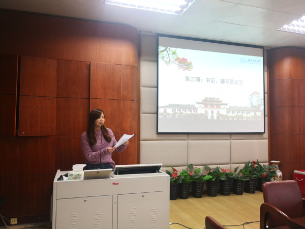 最后党委副书记傅伯奇老师对工作开展进行指导并寄予期望,提出常规工作要精做、学生生活要关注、工作任务讲方法、活动安排有活力等工作方向,希望在新的一年工作中,研会能够成为一支具有特色的队伍。