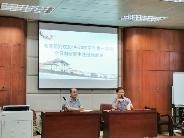 2019年9月15日,我院在502会议室召开了2019-2020学年第一学期注册报到会。副院长王洪才教授、党委副书记傅伯奇、研究生秘书郑雯倩和全体学生参加了本次会议。