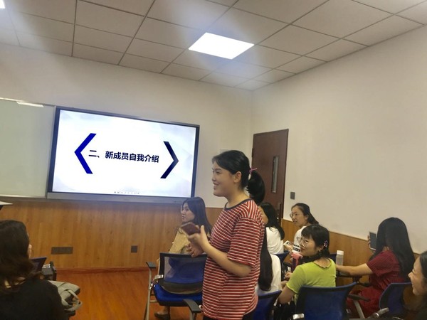 首先,邓媛代表研会干部对新成员表示欢迎,并请新成员们进行自我介绍。大家都表达了加入研会的喜悦心情,期待在研会这个丰富多彩的平台上获得锻炼和成长,此外,还对自己未来的研会工作进行了美好展望,希望尽己所能能给研会增添色彩和欢乐。