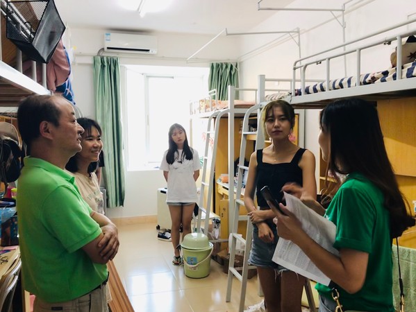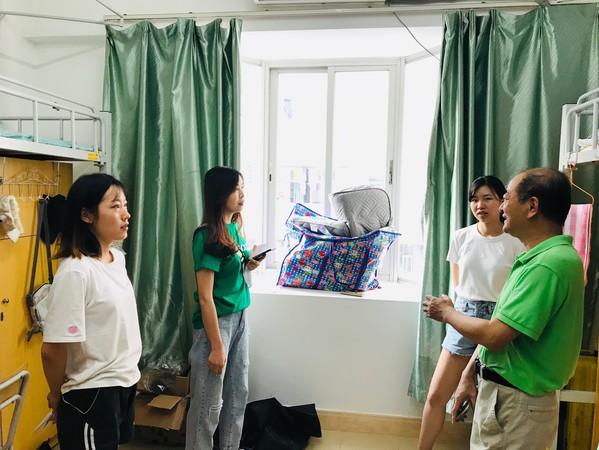 在走访过程中,傅书记和魏老师认真地查看了宿舍周围的设施,亲切地提醒新生注意脚下的大小台阶。在与新生交谈中,傅书记询问了新生的来校情况、在校饮食以及住宿事宜等情况,并强调了用电安全和防暑防蚊等注意事项。同时,傅书记还殷切地希望来自五湖四海的新生们能够共同营造起温馨的宿舍环境和氛围,展示2019级教育研究院新生的新风貌。魏艳老师反复叮嘱新生们,如果在生活和学习上遇到任何问题都可以联系辅导员,及时向学院反馈,学院会竭尽所能为同学们解决问题。