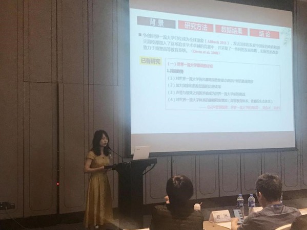 会上,2016级博士生夏颖作了题为《基于IPO模式的“双一流”大学的建设成效研究》的报告。在报告中,她采用量化研究的方法,以高被引文章和就业率为标准将现有41所“双一流”大学分为三类,认为目前影响“双一流”建设成效的主要因素主要有政府投入和高级职称教师人数。虽然该结论现已被已有研究证实,但是借助量化研究的方法和系统分析的视角,能够为学界研究“双一流”大学建设提供新的思路。夏颖还指出,本次会议学者们关于院校研究和大学治理的见解,使其对中国院校研究的发展有了进一步理解。政府与大学之间的关系是影响院校研究支持大学治理的重要因素,治理结构的改变对未来院校研究在中国的发展将起重要作用。