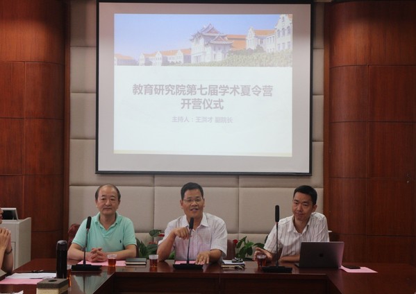 2019年7月13日下午15:00,厦门大学教育研究院举行了第七届学术夏令营开营仪式。教育研究院副院长王洪才教授、党委副书记傅伯奇、教师代表郭建鹏教授、院办郑雯倩老师,2017级硕士生杨忠、本届夏令营全体营员出席了本次活动。王洪才教授主持本次仪式。