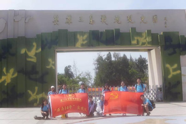 实践期间,实践队一行还前往厦门市英雄三岛战地观光园实地感悟战地文化。英雄三岛战地观光园是目前国内唯一面向金门,以统一祖国大业为主题,战地观光为内容,融爱国主义教育、国防知识教育于一体的教育基地。在这里,实践队队员走进各个教育展馆,观看了“世界之最——大喇叭”、“八二三炮战阵地遗址”、“英雄雕塑广场”等实物展品。通过实地田野观察,实践队了解到“大嶝一寸土,大陆一座山”的历史背景,同时也感受到在长期艰苦卓绝的战斗中,英雄三岛人民谱写出的可歌可泣、威震天下的英雄诗篇及被后人提炼为“艰苦奋斗、甘于奉献、不怕牺牲”的“英雄三岛精神”。党员们表示要认真学习弘扬英雄三岛精神,不忘初心、牢记使命,为实现中华民族伟大复兴的中国梦贡献青春智慧和力量。
