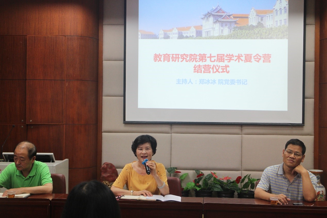 2019年7月18日上午,我院在502报告厅举办第七届学术夏令营结营仪式。本次结营仪式由院党委书记郑冰冰主持,副院长王洪才教授、党委副书记傅伯奇、徐岚副教授出席了此次结营仪式。