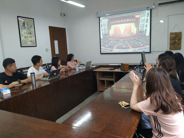 2019年5月5日13时,教育研究院2017级硕士生团支部于院311教室组织开展了“看纪念五四运动100周年大会,学习习近平总书记重要讲话精神”活动。团支部委员邱雯婕带领同学们共同观看了纪念五四运动100周年大会视频,为同学们解读了习近平总书记在纪念五四运动100周年大会上的讲话。她强调,五四运动以来的100年,是中国青年用青春之我创造青春之中国、青春之民族的一百年。以爱国主义为核心的五四精神是需要我们不断传承的,我们青年也要有信心跑出更好的成绩。与会人员深以为然,纷纷表示要为实现中华民族伟大复兴的中国梦贡献出自己的青春力量。