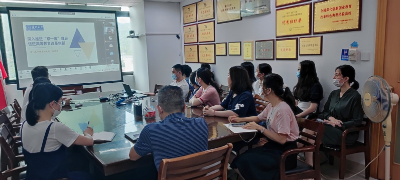 2022年6月20日下午,院党委在厦大学生公寓海韵八报告厅举办政治理论学习暨理论中心组(扩大)学习会。邀请教育部文化素质教育教指委委员、厦门大学南强重点岗位教授、理论学习宣讲团成员,我院教育理论与历史研究所所长赵婷婷教授作“深入推进“双一流”建设 促进高等教育改革创新”专题辅导报告。会议由院党委书记刘振天主持,共有教务处王程处长、教师发展中心计国君主任、美育与通识教育中心楼红英副主任等机关部门领导,我院师生代表约120余人以线上线下结合方式参与学习。