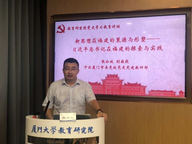 6月7日下午,教育研究院在院502报告厅举行党史学习教育讲坛系列活动暨党委理论学习中心组第三讲。中共厦门市委党校党史党建教研部副教授张公政应邀为我院师生作“新思想在福建的策源与形塑——习近平总书记在福建的探索与实践”专题讲座。本次活动由教育研究院党委副书记姚有新主持,校党委组织部副部长乔连全、研究院党政领导班子成员以及全院师生参加,教务处现教中心联合党支部在教务处会议室和翔安校区设分会场参加学习。