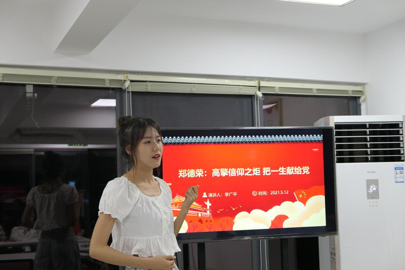 钱璐瑶同志分享了《100位为新中国成立作出突出贡献的英雄模范人物》中方志敏烈士狱中斗争的故事。方志敏是一位赤诚的爱国者、坚贞的革命者,从1935年1月29日被俘,到同年8月6日英勇就义,方志敏身陷囹圄却依旧满怀着革命的激情,以笔作为武器,写下了《可爱的中国》、《清贫》、《狱中纪实》等一批对民族和祖国无限热爱,对革命无限忠贞的狱中文稿。正是这份赤诚的革命信仰,方志敏的人格魅力感染了狱中大半人同情革命,也正是有这样一批为传送文稿做出牺牲、建树功绩的人们,这些宝贵的革命遗作才得以保存流传,继续感染、教诲着一代又一代中华儿女。