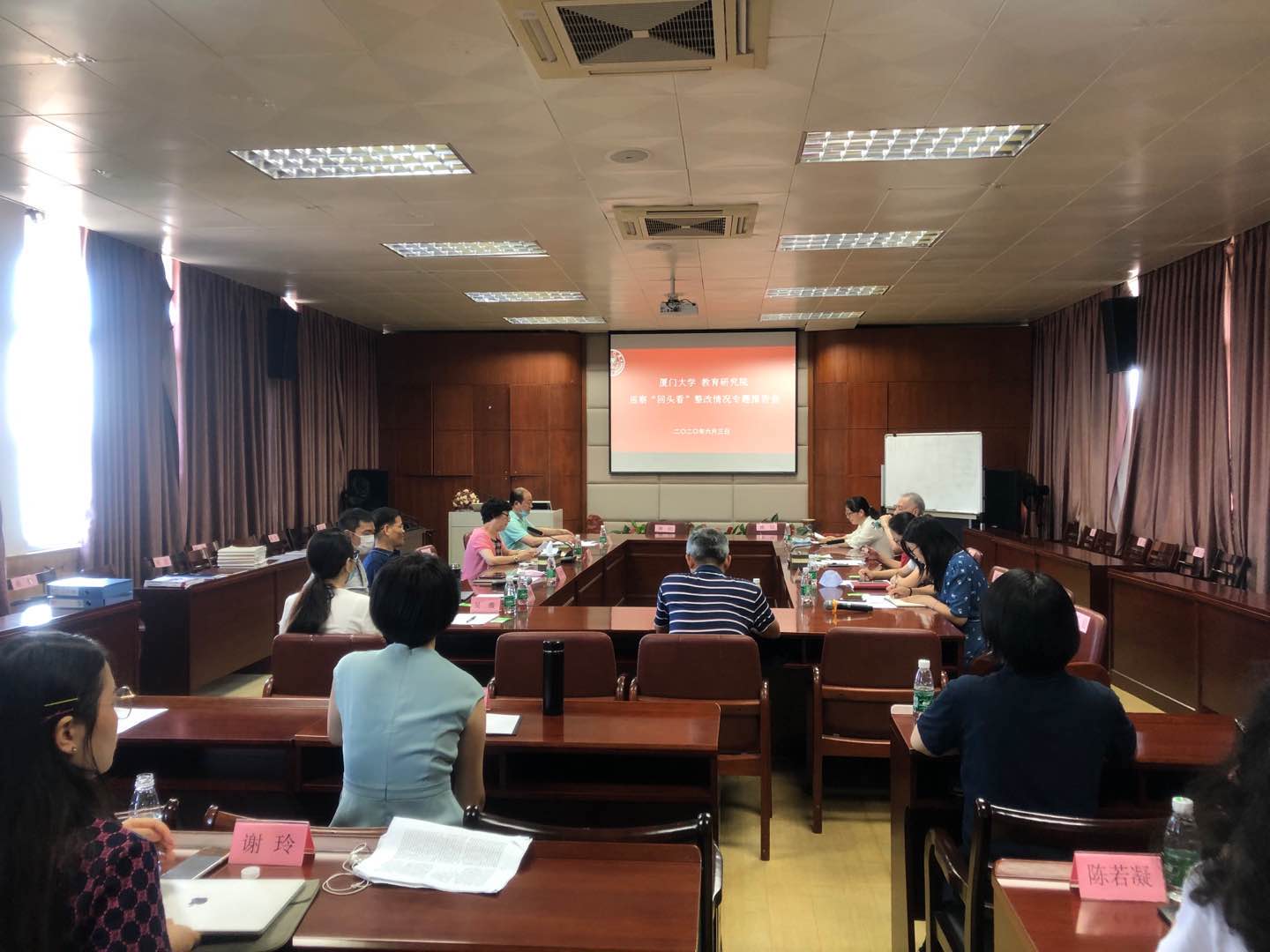 会上,院党委书记郑冰冰从七个方面就巡察反馈意见的整改情况作了汇报。在党的政治建设方面,研究院进一步强化党委政治核心作用,修订了《厦门大学教育研究院党委会议事规则》、《厦门大学教育研究院党政联席会议议事规则》,落实民主集中制;增设党员活动园地、光荣榜,加强党建工作阵地的保障。在党的思想建设方面,落实双周政治理论学习,把研究生导师对学生思政教育责任列入师德师风建设的重要内容,抓牢意识形态工作。在党的组织建设方面,进一步提升党支部工作规范性,开展每月一公布、每月一检查工作,把政治学习与高等教育实际问题接合起来创新党建工作措施,提升基层党组织组织力。在党的作风建设方面,领导班子深入调查研究、深入课堂听课,听取师生意见、了解师生动态。在党的纪律建设方面,全面梳理各项规章制度,编印完成《厦门大学教育研究院规章制度汇报》2020版,做好废改立,加强制度规范性建设。在全面从严治党方面,修订《教育研究院党风廉政建设责任实施办法》,进一步加强党风廉政建设,制定《教育研究院研究生导师责任制》和师德师风考评制度,严格落实研究生导师立德树人职责。在其他方面,推动专任教师挂职锻炼,引进有影响力的专家、学者,召开高层次国际国内学术会议,选送师生对外交流,进一步提升研究院国际化水平。