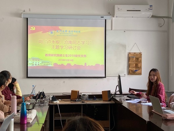 2019年12月16日下午13:30,教育研究院硕士生2018级党支部在院楼311教室组织召开向沧南、卢永根同志学习专题讨论会,学习教育典范,汲取榜样力量。会议由党支部书记郭平同志主持,硕士生2018级党支部全体成员参会。