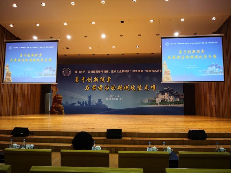 为深入学习习近平总书记在全国教育大会上的重要讲话精神,在广大知识分子中深入开展“弘扬爱国奋斗精神、建功立业新时代”活动,2019年3月11日下午3点,厦门大学“弘扬爱国奋斗精神、建功立业新时代”报告会暨“师德师风讲堂”第三场报告会在厦门大学思明校区科学艺术中心音乐厅隆重举行。教育研究院师生在院党委的组织带领下,准时到达会场聆听报告会。