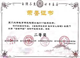 我院硕士生2017级党支部集体创作的《高教研究宗师,教书育人楷模》一文荣获厦门大学“读懂中国”征文二等奖,由杨冬同学作为代表上台领奖。学院在“读懂中国”系列活动中高度重视、精心组织、严格把关,被授予“优秀组织奖”,由傅伯奇副书记代表领奖。硕士生2017级党支部的赵祥辉同学,为到场观众声情并茂地朗诵了获奖征文,再现了全国教书育人楷模、当代教育名家潘懋元先生,乘着改革开放的春风,敢为天下先,奔走呼号创办高等教育学科的历史经过,讴歌了潘先生数十年如一日,由爱而教、以爱施教、因爱成教,关心爱护每一位学生的高尚师德师风,在场的观众无不深受感动和鼓舞。《高教研究宗师,教书育人楷模》一文已作为全校四篇优秀征文之一,获选中国教育电视台“读懂中国”展播作品。